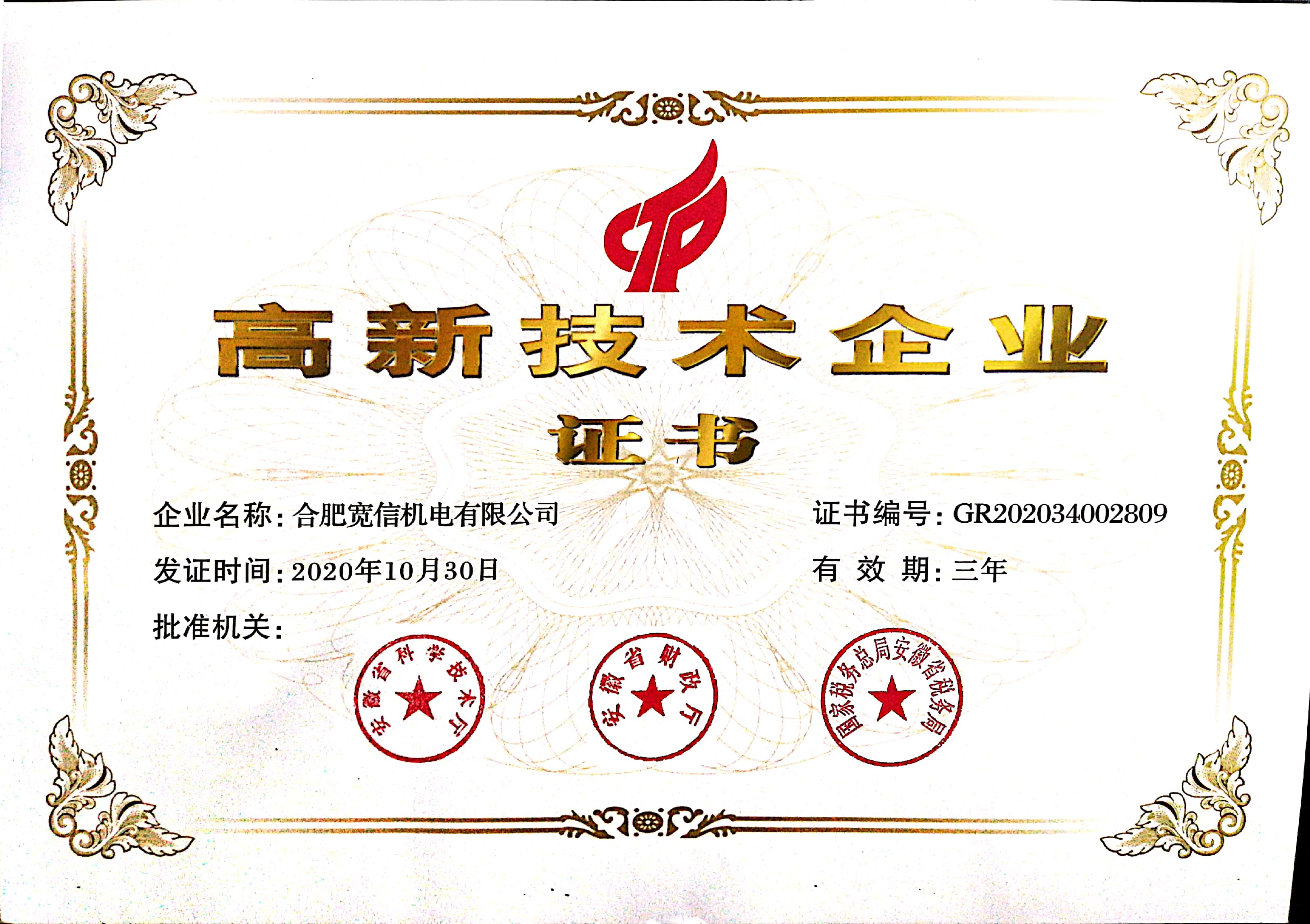 寬信實(shí)用新型證書